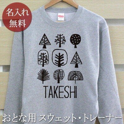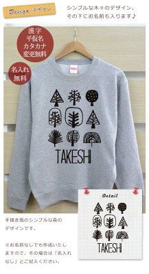 大人用 長袖 トレーナー スウェット 誕生日 プレゼント 名入れ 名前入り 森の木 裏毛 パイル 誕生日プレゼント ママへ パパへ 親子 家族 お揃い 秋冬 【ココロコ】
