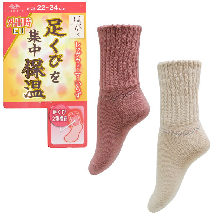 ソックス レディース はくらく 保温靴下 足くびを集中保温 単品 送料無料 レッグウォーマーいらず 温活 くしゅ あったか 靴下 クルーソックス 暖かい 靴下 保温 吸湿発熱 靴下 冬 ぽかぽか ゆったり 発熱 ルームソックス もこもこ 冷え取り 冷え性防止 日本製(03432)
